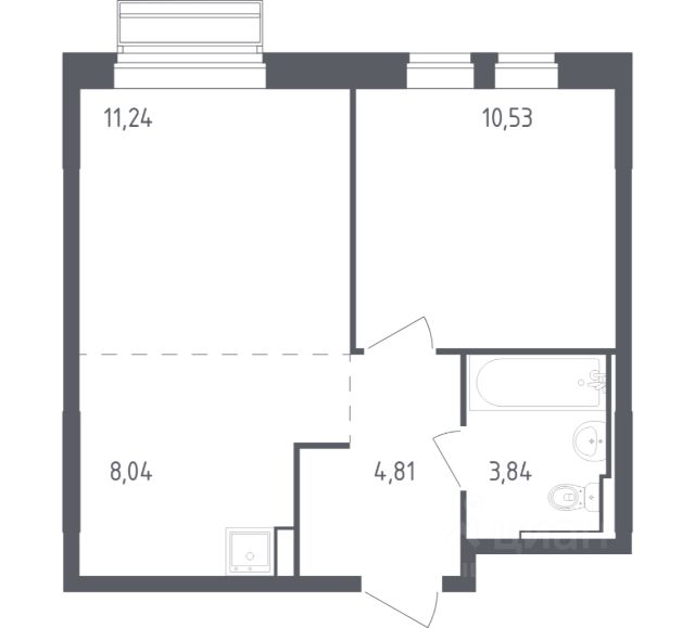 Продаётся 1-комнатная квартира 456, площадью 33,97 м², на 7 этаже в ЖК "Притяжение Сити" корпус 8. Стоимость — от 8778368 руб. Квартира без отделки, планировка односторонняя, окна на улицу.
