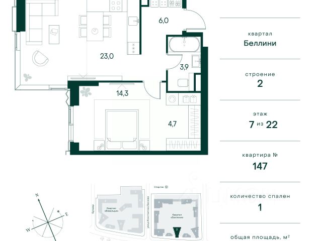 Продаётся 1-комнатная квартира 45 м². В жилом районе Алиа на 7-м этаже 28-этажного дома. Жилой район Алиа — это дома бизнес-класса у слияния Москвы-реки и Сходни. Алиа находится в Покровском-Стрешневе, экологически чистом районе на престижном северо-западе столицы. Район возводится на бывшей территории Тушинского аэрополя, где никогда не было промышленного производства. Алиа — это район разностороннего развития, спроектированный по принципу WORK.LIVE.PLAY.LEARN. Это "15-минутный город", где вся необходимая для комфортной жизни инфраструктура — на расстоянии приятной прогулки. У района удобное расположение: отсюда меньше 10 минут пешком до станций метро "Спартак" и "Тушинская" и всего полчаса на автомобиле до центра города или аэропорта Шереметьево. Архитектурную концепцию Алиа разработало бюро SOM (Skidmore, Owings & Merrill), авторы знаменитой "Бурдж-Халифа". В Алиа больше 140 планировочных решений, среди которых — редкие для Москвы форматы: квартиры с окном в ванной, пентхаус, сити-юниты и таунхаусы. Почти половина территории района отдана под благоустройство. В Алиа три парка: Линейный парк с кафе и магазинами, Центральный парк с амфитеатром, сухим фонтаном и большим плейхабом для детей всех возрастов и Прибрежный парк на собственной набережной, одной из самых длинных в Москве. В каждом урбан-блоке — закрытый внутренний двор с гипоаллергенными растениями и детской площадкой. В лобби каждого жилого корпуса в Алиа оборудована зона ожидания, колясочная, гостевой санузел и лапомойка для домашних животных. За стойкой ресепшена резидентов и их гостей встречает консьерж. Центральное лобби урбан-блока — это стильное общественное пространство с коворкингом, лаундж-зоной и кофе-пойнтом. Это "вторая гостиная" жителей урбан-блока и одно из мест, где формируется комьюнити Алиа. Два ключевых объекта инфраструктуры в Алиа — это спорткомплекс "Чкалов Арена", где представлены 25 видов спорта, и самый большой в стране бизнес-парк класса A, благодаря которому району обеспечено быстрое развитие.