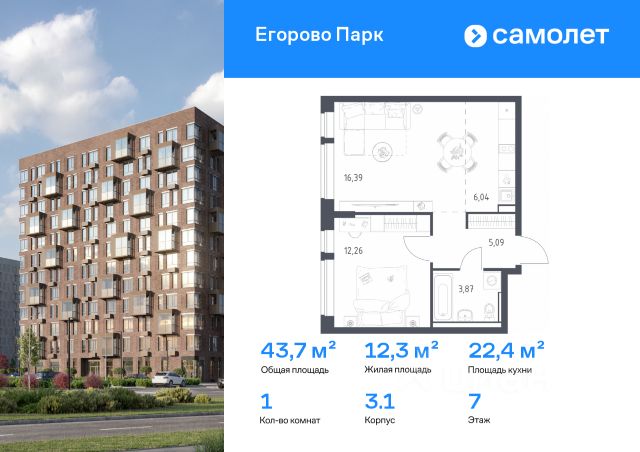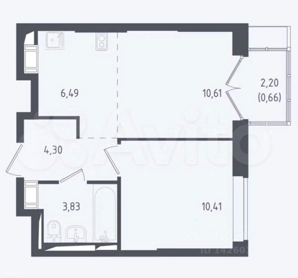 Общая площадь: 35.60 м.кв., Жилая площадь: 17.00 м.кв., Площадь кухни: 10.40 м.кв.