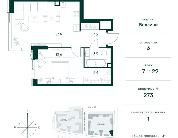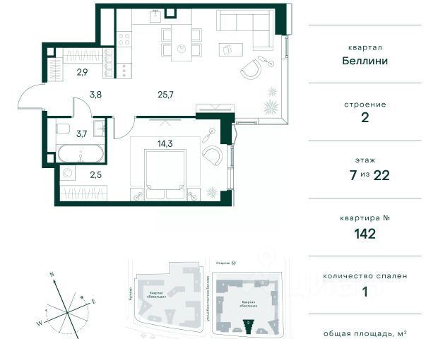 Продаётся 1-комнатная квартира 40.2 м². В жилом районе Алиа на 7-м этаже 28-этажного дома. Жилой район Алиа — это дома бизнес-класса у слияния Москвы-реки и Сходни. Алиа находится в Покровском-Стрешневе, экологически чистом районе на престижном северо-западе столицы. Район возводится на бывшей территории Тушинского аэрополя, где никогда не было промышленного производства. Алиа — это район разностороннего развития, спроектированный по принципу WORK.LIVE.PLAY.LEARN. Это "15-минутный город", где вся необходимая для комфортной жизни инфраструктура — на расстоянии приятной прогулки. У района удобное расположение: отсюда меньше 10 минут пешком до станций метро "Спартак" и "Тушинская" и всего полчаса на автомобиле до центра города или аэропорта Шереметьево. Архитектурную концепцию Алиа разработало бюро SOM (Skidmore, Owings & Merrill), авторы знаменитой "Бурдж-Халифа". В Алиа больше 140 планировочных решений, среди которых — редкие для Москвы форматы: квартиры с окном в ванной, пентхаус, сити-юниты и таунхаусы. Почти половина территории района отдана под благоустройство. В Алиа три парка: Линейный парк с кафе и магазинами, Центральный парк с амфитеатром, сухим фонтаном и большим плейхабом для детей всех возрастов и Прибрежный парк на собственной набережной, одной из самых длинных в Москве. В каждом урбан-блоке — закрытый внутренний двор с гипоаллергенными растениями и детской площадкой. В лобби каждого жилого корпуса в Алиа оборудована зона ожидания, колясочная, гостевой санузел и лапомойка для домашних животных. За стойкой ресепшена резидентов и их гостей встречает консьерж. Центральное лобби урбан-блока — это стильное общественное пространство с коворкингом, лаундж-зоной и кофе-пойнтом. Это "вторая гостиная" жителей урбан-блока и одно из мест, где формируется комьюнити Алиа. Два ключевых объекта инфраструктуры в Алиа — это спорткомплекс "Чкалов Арена", где представлены 25 видов спорта, и самый большой в стране бизнес-парк класса A, благодаря которому району обеспечено быстрое развитие.