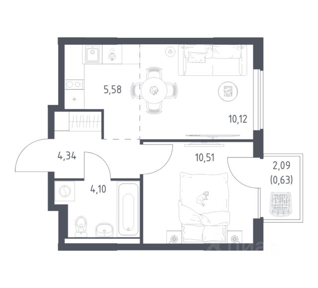 В продаже 1-комнатная квартира в корпусе 7.1 ЖК 'Прибрежный Парк'. Квартира располагается на 7 этаже, общая площадь 40.51 м2.