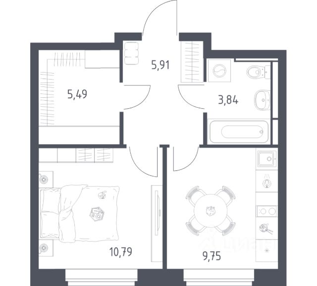 В продаже 1-комнатная квартира в корпусе 19 ЖК 'Пригород Лесное'. Квартира располагается на 7 этаже, общая площадь 40.79 м2.
