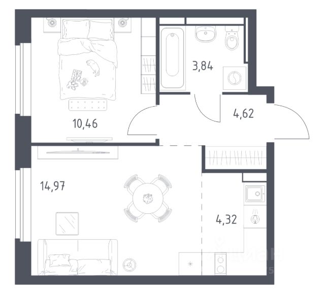В продаже 1-комнатная квартира в корпусе 10.1 ЖК 'Прибрежный Парк'. Квартира располагается на 7 этаже, общая площадь 38.31 м2.