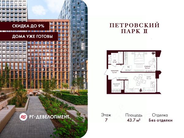 Дом сдан. Ключи в день покупки! В продаже 1-комнатная квартира площадью 37.60 м² с предчистовой отделкой на 7 этаже 43 этажного дома в корпусе Сильвер. ЖК Симфония 34 - концептуально новый жилой комплекс премиум-класса с подземной парковкой, состоит из четырех башен высотой 36 - 54 этажа. Квартиры сдаются с базовой (предчистовой) отделкой MR BASE или дизайнерской чистовой отделкой MR READY. Высота потолков 3 - 6 метров, окна высотой до 2,6 м. Более 100 кладовых в подземной части ЖК и более 500 на этажах. Безопасность - Система контроля входа на территорию комплекса, биометрия - Система автоматического водяного пожаротушения и противопожарного водопровода, система пожарной вентиляции - Доступ на парковку при помощи системы распознавания автомобильных номеров, карточка для контроля доступа резидентов - Система видеонаблюдения - Круглосуточная связь через приложение, телефон, голосовые сообщения с охраной, консьержем, call-центр. Расположение Пешком - 6 минут до метро "Дмитровская" - 15 минут до Тимирязевского парка На машине - 5 минут до Савеловского вокзала и Аэроэкспресса в Шереметьево - 10 минут до Москва-Сити и Садового кольца Благоустройство - 70% территории отведены под зеленые насаждения и ландшафтный дизайн - Приватный Японский сад - Детские площадки с зонированием по возрасту - Clubhouse для резидентов - Wellness & SPA - Зона для пикника, зона с гамаками - Центральное лобби, ресторан, коммерческие помещения - Дополнительный вход/выход на территорию комплекса Окружение - В 10 минутах от Symphony 34 находится дизайн-завод Flacon, где регулярно проходят культурно-образовательные и развлекательные мероприятия - Тимирязевский парк расположен в 850 м. Площадь парка 232 га - Рядом расположен парк "Дубки", площадью 16,5 га. - В 15 минутах расположен Хлебозавод 9. Здесь находятся шоурумы брендов, кафе разных кухонь мира, образовательные проекты и площадки для мероприятиКомпания MR предлагает своим клиентам специальные условия приобретения квартир в рамках программ ипотечного кредитования от банков-партнеров.