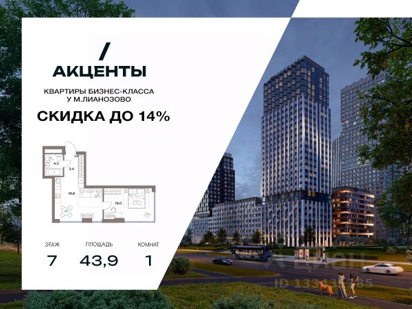 Однокомнатная квартира для молодой пары или начинающего специалиста. -В квартире предусмотрено смешанное остекление -Кухня-гостиная с зонированной кухней и пространством для отдыха -Приватная изолированная спальня с зоной гардеробной и возможностью организации рабочего места -Отдельная зона гардеробной при входе Молодой район для жизни "Акценты" в классе бизнес-лайт — точка роста на севере Москвы. Он предлагает элегантные и строгие фасадные решения, авторский ландшафтный дизайн, а также функциональные и доступные по цене планировки. Проект находится в семи минутах пешком от станции метро "Лианозово" и одноименной МЦД-1. Добраться до МКАД можно будет за 10 минут на авто, а дорога до центра займет около 20 минут. Жилой комплекс, расположенный в районе Восточного Дегунино, предлагает развитую инфраструктуру для тех, кто ценит выбор. Он имеет удобный доступ не только к транспорту, но и к паркам, школам, садам, больницам и другим социальным объектам. В пешей доступности находятся 4 поликлиники, 5 школ, 6 детских садов, 3 бассейна и баскетбольная академия. Еще рядом есть несколько лесопарков: "Лианозово" с аттракционами и спортивными площадками для тенниса, волейбола и баскетбола, "Останкино" с конным клубом, прудом и пейнтбол-площадками. А "Северные Дубки" — это завораживающее пространство для прогулок под кронами вековых дубов, берез и лип. Кроме того, в районе не будет скучно и юным жителям. Можно оттачивать трюки в скейтпарке "Союз". Ловким и прыгучим советуем записаться в акробатический центр "Белка".
