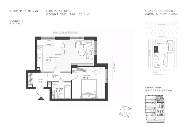 Продается 1-к квартира площадью 54.3 кв.м. на 8-м этаже в ЖК "Клубный квартал Крылатская 33". Прямая продажа от застройщика! Крылатская 33 - проект премиум-класса на западе Москвы от специализированного застройщика "Сияние". Комплекс расположен всего в 15 минутах от Садового кольца и Москва-Сити, а рядом есть большое количество зелёных зон: Крылатский и Москворецкий парки, Серебряный бор, Крылатские холмы - это создает идеальный баланс между приватностью и динамичным ритмом мегаполиса. Квартал сочетает высотные башни до 150 метров и камерные малоэтажные корпуса. Витражное остекление "в пол" наполняет квартиры светом и открывает захватывающие панорамы на Москву-реку и знаковые виды столицы. Здесь каждый найдет то, что подходит именно ему - от уютных студий до роскошных пентхаусов и квартир с собственными террасами. Внутренняя среда жилого комплекса продумана до мельчайших деталей, чтобы резиденты могли продуктивно работать и качественно отдыхать, не покидая территорию: • фитнес-центр, включающий в себя СПА-зону; • коворкинг с кофейней и быстрым интернетом; • общественная гостиная для организации клубных мероприятий; • ресторан с панорамным остеклением; • благоустроенный сад с зоной отдыха; • инновационная игровая площадка для детей всех возрастов; • консьерж-сервис 24/7, современные системы видеонаблюдения и пожаротушения; • двухуровневый паркинг и многое другое. Район Крылатское - точка притяжения для тех, кто выбирает активный образ жизни. В непосредственной близости расположены Гребной канал, Олимпийский велотрек, горнолыжный комплекс "Лата Трэк", гольф-клуб и парковые зоны. В проекте действуют привлекательные условия покупки: - выгода до 10% при 100% оплате (действует на ограниченный пул квартир, подробности уточняйте в отделе продаж). - рассрочка от застройщика 0% с первоначальным взносом от 20% на срок до 30.06.2027.