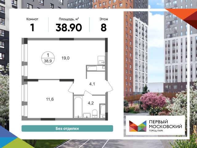 Продается однокомнатная квартира без отделки в 9 фазе города-парка "Первый Московский". Общая площадь квартиры - 38,9 кв. м, этаж 8 из 19. Срок сдачи - 2 квартал 2027 года. Тип дома - монолитный. Цена указана при 100% оплате. Новый корпус состоит из 3 секций: Все квартиры с отделкой White Box с возможностью дополнительного выбора дизайнерской отделки: Classic или Smart+ Город-парк "Первый Московский" расположен всего в 7 км по Киевскому шоссе (Новая Москва). Из города-парка прямой выезд на Киевское шоссе и трассу Солнцево-Бутово-Варшавское шоссе. ТРАНСПОРТНАЯ ДОСТУПНОСТЬ: - 5 мин. на личном автомобиле или 10 мин. на автобусе 189, 147, 193 до станции метро "Филатов Луг" - 5 мин. на личном автомобиле или 12 мин. на автобусе 863 до станции метро "Саларьево" - 6 мин. на личном автомобиле или 15 мин. на автобусе 333 до станции метро "Рассказовка" РАЗВИТАЯ ИНФРАСТРУКТУРА В ОКРУЖЕНИИ: - общеобразовательная школа 2120 (корпуса д1, д7, ш1-ш5) - детский сад 2120 (корпуса д2, д9) - школа искусств - городская больница, детская поликлиника, филиал 5 - подстанция скорой помощи 58 и пожарно-спасательный центр 313 - отдел полиции, отдел ГИБДД - торговые центры "Столица" и "Новомосковский" - стадион, каток, бассейн - кафе, продуктовые магазины, аптеки, фитнес-центры, салоны красоты и пр. БЛАГОУСТРОЙСТВО: - дворы без машин - разнообразные детские площадки и развивающие комплексы - детские площадки разделены по возрастным группам - максимальная близость корпуса к парку "Филатов луг" - озеленение территории с учетом зонирования, островками для отдыха ОСОБЕННОСТИ АРХИТЕКТУРЫ: - безбарьерные входные группы - велопарковка на -1 этаже - колясочные в каждой входной группе - коммерческие помещения на 1 этаже в трех секциях - кладовые помещения расположены на жилых этажах и на -1 этаже - в каждой секции корпуса - 4 лифта: 2 пассажирских, 2 грузовых - видеонаблюдение установленное в холлах первых этажей, у подъездов и на прилегающей территории АВТОРСКИЙ ДИЗАЙН: Входные группы выполнены по авторскому дизайну, оснащены системой "тёплый пол". В каждой входной группе будет располагаться комфортабельная зона ожидания, почтовые ящики с ячейкой для спама, колясочная, акцентные пуфы и столик.
