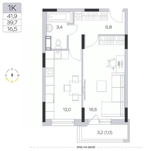 Продаётся 1-комнатная квартира 422, площадью 39,66 м², на 8 этаже в ЖК "Императорские Мытищи" корпус 1.1. Стоимость — от 7331411 руб. Квартира без отделки, планировка односторонняя, окна во двор.