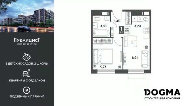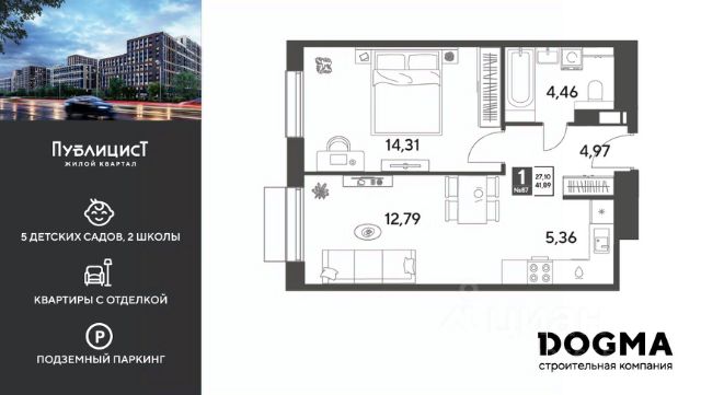 Продаётся 1-комнатная квартира в строящемся доме (Корпус 4), срок сдачи: IV-кв. 2026, общей площадью 44.5 кв.м., на 8 этаже. Расположение, транспортная доступность
