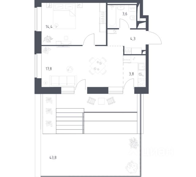О квартире Продаётся однокомнатная квартира общей площадью 47.45 кв. м. с отделкой на выбор: черновая, White Box. Квартира на 8 этаже корпуса 5 в жилом комплексе бизнес-класса "Среда на Кутузовском". До метро "Кунцевская" 10 минут пешком. Исторический зелёный район "Среда на Кутузовском" строится в Кунцево - историческом и экологически чистом районе Москвы. Здесь нет крупных производств, много лесных массивов и роза ветров, которая обеспечивает приток чистого воздуха. Район наполнен жизнью и уже развит: много детских садов и школ, поликлиники, магазины, кафе, спортивные объекты, парки. - 10 минут пешком до станции метро "Кунцевская". - 5-8 минут на машине до Кутузовского проспекта и Можайского шоссе и 10-15 минут до Рублёвского и МКАД. - 15 минут езды до Крылатских холмов, Суворовского парка и заказника "Долина реки Сетунь". Акции и спецпредложения - Выгода 12%: если внести 100% оплату или оформить семейную ипотеку под 6%. Действует до 13 апреля. - Низкие ставки по ипотеке: 0,1% в первый год или 0,11% в первые два года кредита. - Трейд-ин от "Среды": можно обменять свою текущую квартиру на новую. - Ипотека для семей с детьми: если ребёнку до 7 лет, предлагаем льготную ставку 3,5% О жилом комплексе "Среда на Кутузовском" - новый квартал с башнями от 12 до 44 этажей, окружённый лесными массивами и историческими усадьбами старой Москвы. Во внутреннем дворе есть водоём, многоуровневые зоны с детскими и спортивными площадками, коворкинг на свежем воздухе и локации для уединённого отдыха. Особенности - Архитектура с многослойными фасадами. - Квартиры с террасами и мастер-спальнями. - Окна в пол на всех этажах. - Общественные лаунж-гостиные. - Собственный ландшафтный парк во дворе. - Зоны барбекю и площадки для отдыха у воды. - Умный подземный паркинг. - Стрит-ритейл на первых этажах.