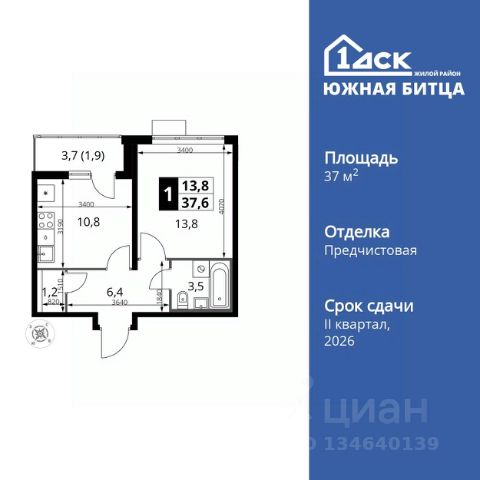 Прямая продажа от застройщика! Семейный жилой район класса Комфорт Плюс Продаётся 1-к квартира номер 287 общей площадью 37.6 кв.м. на 8-м этаже 22 этажного здания. Отделка Whitebox. Особенности квартиры: - Линейная планировка - максимальная функциональность и удобство. - Просторная кухня - место для семейных ужинов и кулинарных экспериментов. - Гардеробная - удобство для хранения и организации вещей. - Лоджия - уютное место для отдыха и тишины. Квартира с предчистовой отделкой (White box). Вам не придется заниматься черновыми и трудоёмкими работы, а чистовую отделку и дизайн - сделайте на свой вкус. Информация о комплексе: Сочетание свободного перемещения по внутреннней территории без машин и ощущения абсолютной безопасности благодаря надежным ограждениям - вот что отличает ЖК Южная Битца. На территории комплекса созданы все условия как для активного образа жизни, так и для спокойного времяпрепровождения. Свободно перемещайтесь по внутренней территории в безбарьерной среде! Продуманное зонирование во дворах позволяет отделить тихие зоны для родителей со спящими младенцами и тех, кто хочет почитать на свежем воздухе, от шумных игровых зон. Игровые зоны учитывают возраст детей. Площадки для детей старшего возраста вынесены за пределы дворов. Ощущение уютного дома должно начинаться с подъезда. Мы постарались предусмотреть все нюансы, чтобы наши лифты отвечали самым строгим современным требованиям. А наличие кладовых позволит вам поддерживать идеальный порядок и уют в вашей квартире! Транспортная доступность: В 3 км от МКАД в нескольких минутах езды до трех станций метро: Аннино, Бульвар Дмитрия Донского, улица Старокочаловская и станции МЦД2 - жд Бутово. Внутренняя инфраструктура: Для жителей жилого района "Южная Битца" доступна развитая инфраструктура близлежащих московских районов Чертаново, Южное, Бирюлёво Западное, Северное Бутово и Южное Бутово. Множество образовательных учреждений, объекты здравоохранения, торговые и развлекательные центры, кинотеатры, кафе, рестораны, парки.