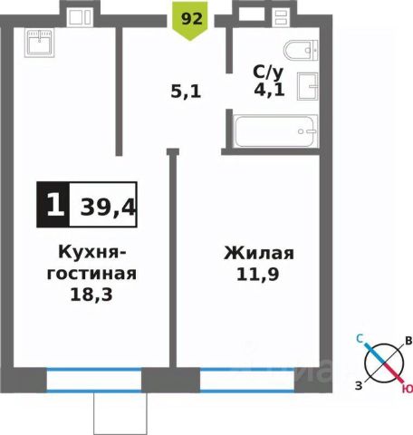 •С/У (7м) раздельный просторный с/у с полноценной ванной, стиральной машиной (Bosch)