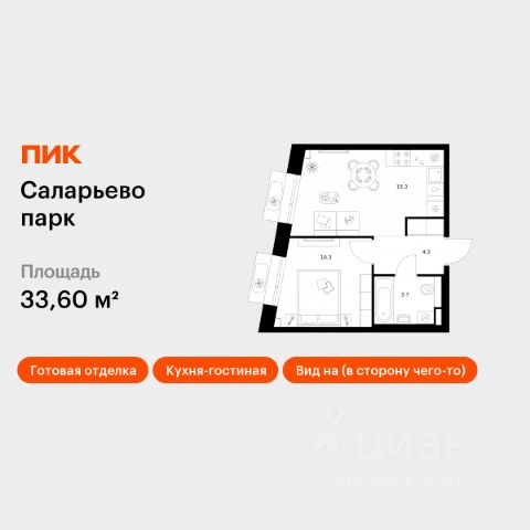 Продаётся 1-комн. квартира площадью 34 кв.м на 8 этаже 22 этажного дома (Корпус 57.3, Секция 3) проекта ПИК Саларьево парк. Светлый просторный подъезд на уровне земли, функциональная планировка, большие окна, предчистовая отделка. Жилой район "Саларьево парк" расположен в Новой Москве, в четырёх километрах от МКАД по Киевскому шоссе. Две станции метро: "Саларьево" и "Филатов луг", — находятся в пешей доступности от проекта. Дойти до них можно за 510 минут. В квартале уже создана качественная среда, где есть абсолютно всё для полноценной жизни, работы и отдыха. Благодаря удобному расположению проекта всё важное будет рядом: детские сады, школы, кафе и рестораны, шопинг в торговых центрах, фитнес и даже аэропорт. Все корпуса в квартале гармонично сочетаются, образуя единую городскую среду. Между собой их объединяет невысокая этажность и натуральная цветовая гамма. Здесь приятно гулять и проводить время на улице всей семьёй. В "Саларьево парке" создана уникальная образовательная среда, включающая в себя шесть школ, рассчитанных на 6 250 учеников. Две из них уже открыты, их посещает 2 300 детей. Также на территории "Саларьево парка" находится 12 детских садов, один из которых с бассейном. Сейчас уже открыты 7 садов. В "Саларьево парке" открыта уникальная игровая площадка — PlayHub "Оригами". Здесь есть ручей, горка-труба и рельефные холмы. Взрослые смогут отдохнуть в уютном кафе, пока дети играют. Также на территории проекта есть SportHub — большая спортивная зона, разделённая по интересам и возрастам. Здесь можно заниматься разными видами спорта: футболом, баскетболом, волейболом и стритболом. Зимой центральную часть площадки превращают в каток. Во дворах-парках жилого квартала есть места для отдыха, детские и спортивные площадки. На первых этажах домов расположены магазины, кафе и полезные сервисы. Также вблизи проекта есть несколько масштабных торговых центров. До ТЦ "Саларис" пять минут пешком, до "Рио", Metro Cash & Carry и "Леруа Мерлен" — пять минут на автомобиле. Артикул 1018358 (Застройщик ООО "Специализированный Застройщик "Тирон")
