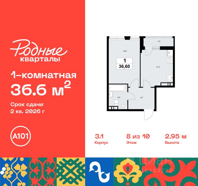 Прямая продажа от застройщика. Продаётся 1-комнатная квартира общей площадью 37.63 м² без отделки в премиальном жилом комплексе "МЫС" на 8-м этаже 12 этажного дома. Квартира расположена в корпусе "Волга". Проект МЫС — это, прежде всего, идеальное место для семей. В рамках проекта построят государственную школу, два детских сада и дворец спорта площадью 20 000 м2 с термальным комплексом, выплывным бассейном, фитнес-залом, теннисными, сквош и падел кортами и секциями для детей. На территории площадью, сравнимой с тремя парками Зарядье, появятся кафе и рестораны, пруд с набережной, спортивные и детские площадки, скейт-парк, лыжные и веломаршруты. Расположение: - 2 минуты до скоростной трассы М1 и Минского шоссе; - 10 минут до МКАД; - 15 минут до МЦД Лесной Городок - 20 минут до делового центра "Москва-Сити"; - 28 минут до аэропорта "Внуково". Благоустройство: - велосипедные и лыжные маршруты; - собственная набережная и парк; - лаунж-зоны в окружении природы; - беседки у очага; - дворец спорта площадью 20 000 м²; - термальный комплекс с тремя бассейнами; - 4 теннисных и падел-корта; - 6 сквош-кортов; - многофункциональный спортзал; - скейт-парк; - просторная площадь для прогулок с фонтаном; - детский клуб с творческими секциями; - гастро-доминанта; - кафе у пруда, рестораны, ритейл. Окружение - соседство с лесным фондом; - школа на 1250 мест и 2 детских сада на 350 и 255 мест; - Дубковский и Подушкинский леса, парк "Рассказовка", Мещерский парк. Действуют специальные условия при 100% оплате, подробности уточняйте у менеджера в офисе продаж.