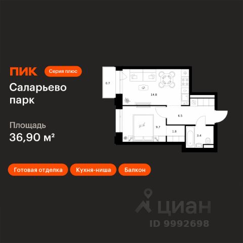 Продается однокомнатная квартира без отделки в 7 фазе города-парка "Первый Московский". Общая площадь квартиры - 36,7 кв. м, этаж 8 из 20. Срок сдачи - 1 квартал 2027 года. Тип дома - монолитный. ТОЛЬКО ДО 30 АПРЕЛЯ выгодные условия на приобретение квартиры в ипотеку или рассрочку. Звоните - и мы подберем оптимальное предложение под ваш запрос! Корпус состоит из 3 секций. Город-парк "Первый Московский" расположен всего в 7 км по Киевскому шоссе от МКАД на территории Новой Москвы. Из города-парка прямой выезд на Киевское шоссе и трассу Солнцево-Бутово-Варшавское шоссе. ТРАНСПОРТНАЯ ДОСТУПНОСТЬ: - 5 мин. на личном автомобиле или 10 мин. на автобусе 189 и 147 до станции метро "Филатов Луг" - 25 мин. пешком до станции метро "Филатов Луг" ИНФРАСТРУКТУРА: Около 7 фазы запланировано строительство детского сада, школы, 2 многоуровневых паркингов. Также на территории проекта есть все необходимые объекты действующей социальной и бытовой инфраструктуры: 8 детских садов, 5 школ, ТЦ, магазины, паркинги, аптеки и др. БЛАГОУСТРОЙСТВО: - Дворы без машин - Игровые зоны для детей, зоны для занятия спортом, зоны для отдыха с навесами/качелями - Детские площадки разделены по возрастным группам - Пешеходный и веломаршрут с двухполосной велодорожкой 2,5 м в ширину - Озеленение с растениями всесезонного цветения ОСОБЕННОСТИ АРХИТЕКТУРЫ: В каждой секции 3 корпуса предусмотрены: - колясочные во входных группах - кладовые помещения с -1 по 20 этажи - коммерческие помещения на 1 этажах - по 4 лифта: 2 пассажирских, 2 грузовых - видеонаблюдение, установленное в холлах первых этажей, у подъездов и на прилегающей территории АВТОРСКИЙ ДИЗАЙН: Входные группы выполнены по авторскому дизайну, оснащены системой "тёплый пол". В каждой входной группе будет располагаться комфортабельная зона ожидания с мягким диваном, акцентными пуфами и столиком.