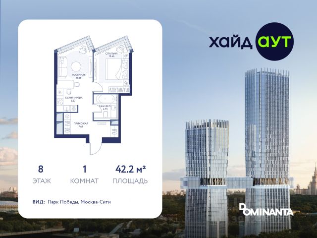 Прямая продажа от застройщика! Продается 1-комнатная квартира площадью 45.8 кв.м. на 8-м этаже 34-этажного дома в жилом комплексе ХАЙДАУТ с панорамными видами: Парк Победы, Долина реки Сетунь, МГУ, Москва-Сити, Воробьевы горы. Высота потолков 3,25 м. В ХАЙДАУТ доступны различные условия покупки — от специальных предложений при полной оплате до комфортных программ рассрочки и индивидуальных ипотечных решений. ХАЙДАУТ — премиальный проект компании Dominanta. Это новый уровень жизни и комфорта без компромиссов. Две башни — 34 и 49 этажей — открывают захватывающие виды на Москву. Архитектурной доминантой проекта становится мост, соединяющий башни на высоте 80 метров. Закрытая территория, охрана 24/7, зона экстренной безопасности на подземном уровне, система пожаротушения. На мосту между башнями на 22-м этаже находится общественное пространство SocialHUB — предусмотрено 16 комфортных пространств для работы, отдыха и развлечений с панорамными видами и клубным форматом доступа. Концепция благоустройства ХАЙДАУТ — баланс между природой и технологичным городом будущего. На территории сада предусмотрены 15 зон для отдыха, работы, спорта и детей. Знаковым местом станет центральная площадь с амфитеатром и водопадом — сочетание камней, растений и струящейся воды создает идеальный баланс с природой. Застройщик АО "СЗ "ХАЙДАУТ", ИНН 7729058636, ОГРН 1027739319420. Проектная декларация на сайте наш.дом.рф. Предложение не является публичной офертой.