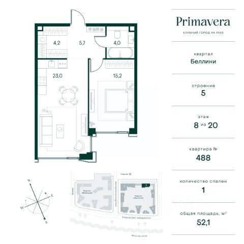Цена указана с учётом скидки при 100%-й оплате, несубсидированной ипотеке, рассрочке (кроме программы "Рассрочка 0%"). Продается 1-комнатная квартира площадью 50.10 кв. м без отделки. Квартира находится на 8 этаже 20-этажного корпуса 5, в новом жилом комплексе бизнес-класса Level Войковская, расположенном рядом с живописным заповедником "Покровское-Стрешнево" (застройщик - компания Level Group/Левел групп). Прекрасная транспортная доступность - 7 мин. пешком до станции МЦК "Балтийская"; - 15 мин. пешком до станции метро "Войковская"; - 8 мин. на машине до ТТК; - 15 мин. на машине до центра Москвы; - 20 мин. на машине до Москва-Сити. Продуманный архитектурный проект - стильная архитектура от мастерской Фефелова В. В.; - панорамные виды на парки, Химкинское водохранилище и Останкинскую башню; - лобби с высотой потолков до 6,45 метров; - более 20 видов планировочных решений, включая редкие форматы квартир с террасой и увеличенной высотой потолков до 5,42 метров; - 2 варианта дизайнерской отделки в корпусе 4, предлагаются как дополнительная опция к отделке white box: стиль Modern в светлых холодных тонах и стиль Classic в нейтральной бежевой гамме. Квартиры в корпусах 3 и 5 сдаются без отделки. Расположение Level Войковская строится в престижном Северном округе Москвы. Развитая инфраструктура и живописная природа переплетаются в единый ансамбль, столь значимый для комфортной жизни. Войковский район окружают парки и набережные. В шаговой доступности - парк "Покровское-Стрешнево", не более 15-ти минут на велосипеде занимает путь до Тимирязевского парка и 9-ти минут до парка усадьбы Михалково. Рядом более 60 школ, 75 дошкольных учреждений, 17 государственных и 6 частных вузов, 25 супермаркетов, 4 торговых центра, среди которых ТЦ "Метрополис" и ТЦ "Авиапарк". Внутренняя инфраструктура На территории жилого комплекса предусмотрены коммерческие помещения: кафе, ресторан, пекарня и другие сервисы откроются на первых этажах корпусов. Для жителей будет доступен отапливаемый подземный паркинг на 244 машино-места с доступом с любого этажа на лифте. На территории паркинга будет расположено 125 кладовых помещений для хранения сезонного инвентаря. Лобби и благоустройство Дизайн лобби Level Войковская создан совместно с бюро BLANK. Это уютные гостиные, где хочется задержаться. Теплая цветовая гамма, ресепшен, зоны ожидания, лапомойки и гостевые санузлы - каждая деталь превращает лобби в комфортное продолжение вашего дома. 1,15 га площади в первых двух этапах строительства отведено под приватный внутренний двор, который спроектирован совместно с бюро "Правда". Детские площадки для всех возрастов, спортивные пространства для йоги, воркаута и петанка, уютные зоны для тихого отдыха или работы. Здесь утро начинается с вдохновения, а вечер наполнен приятными моментами. Лифты Комфортное перемещение внутри жилого комплекса будут обеспечивать надёжные лифты с доступом в паркинг с жилых этажей. В каждом корпусе предусмотрено по 3 грузопассажирских лифта.