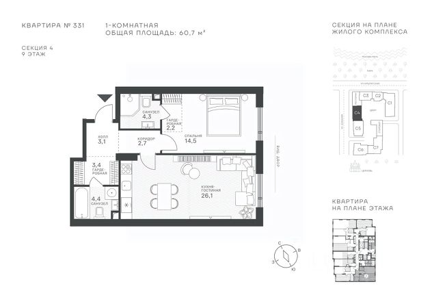 Продается 1-к квартира площадью 60.1 кв.м. на 9-м этаже в ЖК "Клубный квартал Крылатская 33". Прямая продажа от застройщика! Крылатская 33 - проект премиум-класса на западе Москвы от специализированного застройщика "Сияние". Комплекс расположен всего в 15 минутах от Садового кольца и Москва-Сити, а рядом есть большое количество зелёных зон: Крылатский и Москворецкий парки, Серебряный бор, Крылатские холмы - это создает идеальный баланс между приватностью и динамичным ритмом мегаполиса. Квартал сочетает высотные башни до 150 метров и камерные малоэтажные корпуса. Витражное остекление "в пол" наполняет квартиры светом и открывает захватывающие панорамы на Москву-реку и знаковые виды столицы. Здесь каждый найдет то, что подходит именно ему - от уютных студий до роскошных пентхаусов и квартир с собственными террасами. Внутренняя среда жилого комплекса продумана до мельчайших деталей, чтобы резиденты могли продуктивно работать и качественно отдыхать, не покидая территорию: • фитнес-центр, включающий в себя СПА-зону; • коворкинг с кофейней и быстрым интернетом; • общественная гостиная для организации клубных мероприятий; • ресторан с панорамным остеклением; • благоустроенный сад с зоной отдыха; • инновационная игровая площадка для детей всех возрастов; • консьерж-сервис 24/7, современные системы видеонаблюдения и пожаротушения; • двухуровневый паркинг и многое другое. Район Крылатское - точка притяжения для тех, кто выбирает активный образ жизни. В непосредственной близости расположены Гребной канал, Олимпийский велотрек, горнолыжный комплекс "Лата Трэк", гольф-клуб и парковые зоны. В проекте действуют привлекательные условия покупки: - выгода до 10% при 100% оплате (действует на ограниченный пул квартир, подробности уточняйте в отделе продаж). - рассрочка от застройщика 0% с первоначальным взносом от 20% на срок до 30.06.2027.