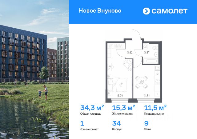Продается однокомнатная квартира без отделки в 9 фазе города-парка "Первый Московский". Общая площадь квартиры - 38,9 кв. м, этаж 9 из 19. Срок сдачи - 2 квартал 2027 года. Тип дома - монолитный. Цена указана при 100% оплате. Новый корпус состоит из 3 секций: Все квартиры с отделкой White Box с возможностью дополнительного выбора дизайнерской отделки: Classic или Smart+ Город-парк "Первый Московский" расположен всего в 7 км по Киевскому шоссе (Новая Москва). Из города-парка прямой выезд на Киевское шоссе и трассу Солнцево-Бутово-Варшавское шоссе. ТРАНСПОРТНАЯ ДОСТУПНОСТЬ: - 5 мин. на личном автомобиле или 10 мин. на автобусе 189, 147, 193 до станции метро "Филатов Луг" - 5 мин. на личном автомобиле или 12 мин. на автобусе 863 до станции метро "Саларьево" - 6 мин. на личном автомобиле или 15 мин. на автобусе 333 до станции метро "Рассказовка" РАЗВИТАЯ ИНФРАСТРУКТУРА В ОКРУЖЕНИИ: - общеобразовательная школа 2120 (корпуса д1, д7, ш1-ш5) - детский сад 2120 (корпуса д2, д9) - школа искусств - городская больница, детская поликлиника, филиал 5 - подстанция скорой помощи 58 и пожарно-спасательный центр 313 - отдел полиции, отдел ГИБДД - торговые центры "Столица" и "Новомосковский" - стадион, каток, бассейн - кафе, продуктовые магазины, аптеки, фитнес-центры, салоны красоты и пр. БЛАГОУСТРОЙСТВО: - дворы без машин - разнообразные детские площадки и развивающие комплексы - детские площадки разделены по возрастным группам - максимальная близость корпуса к парку "Филатов луг" - озеленение территории с учетом зонирования, островками для отдыха ОСОБЕННОСТИ АРХИТЕКТУРЫ: - безбарьерные входные группы - велопарковка на -1 этаже - колясочные в каждой входной группе - коммерческие помещения на 1 этаже в трех секциях - кладовые помещения расположены на жилых этажах и на -1 этаже - в каждой секции корпуса - 4 лифта: 2 пассажирских, 2 грузовых - видеонаблюдение установленное в холлах первых этажей, у подъездов и на прилегающей территории АВТОРСКИЙ ДИЗАЙН: Входные группы выполнены по авторскому дизайну, оснащены системой "тёплый пол". В каждой входной группе будет располагаться комфортабельная зона ожидания, почтовые ящики с ячейкой для спама, колясочная, акцентные пуфы и столик.