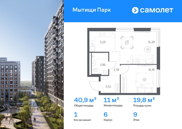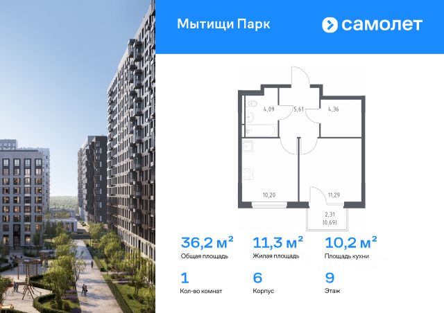 Продажа 1-комнатных квартир на 9 этаже рядом с метро Бибирево