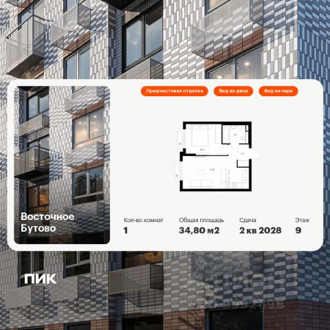Продаётся 1-комн. квартира площадью 34,6 кв.м на 9 этаже 25 этажного дома (Корпус 55, Секция 1) проекта ПИК Восточное Бутово. Светлый просторный подъезд на уровне земли, функциональная планировка, большие окна, предчистовая отделка. Жилой квартал "Восточное Бутово" расположен в 5 км от МКАД по Симферопольскому шоссе, в Ленинском районе Московской области. Это экологически благоприятное место по соседству с Бутовским лесопарком. В 25 минутах на машине - станции метро и МЦД "Бутово". В "Восточном Бутово" уже открылись пять детских садов из десяти запланированных и одна школа из четырёх. Внутри квартала будет две поликлиники, одна из которых уже работает. В проекте два пешеходных бульвара - по одному из них уже можно гулять и кататься на велосипеде. В закрытых дворах-парках не будет автомобилей - мы построим многоуровневый паркинг, чтобы сделать район ещё более комфортным и безопасным для жителей. Артикул 1044142 (Застройщик ООО "Лотан")