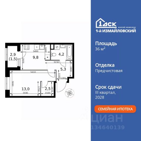 Просторная 1-комнатная квартира для молодой семьи. Общая площадь - 44м2, удобная планировка, кухня-гостиная 18.1м2. Панорамные виды из окон на две стороны - на национальный парк "Лосиный остров" и благоустроенный внутренний двор. Условия покупки: - Скидка при полной оплате - 10% - Ипотека от 3,5% на весь срок или 0,11% на первый год - Рассрочка без процентов - Trade-in с проживанием на время строительства дома НАЗАРЕ - шесть домов бизнес-класса высотой 24-43 этажа. Проект расположен рядом с национальным парком "Лосиный остров" и парком "Сокольники". В продаже квартиры с мастер-спальнями, кухнями-гостиными, открытыми террасами, просторными кладовыми и ванными с окном. Форматы - от светлых студий 21,6 м2 до семейных 4-комнатных 125,5 м2. Часть лотов - с предчистовой отделкой White Box. Транспортная доступность: - Метро "Бульвар Рокоссовского" и МЦК - 2 мин. пешком - Северо-Восточная хорда - 3 мин. на автомобиле - Третье транспортное кольцо - 15 мин. на автомобиле - Садовое кольцо - 18 мин. на автомобиле Инфраструктура: В составе проекта появится собственный детский сад и торгово-развлекательный центр с акцентом на шопинг и досуг. На первых этажах домов откроются кафе, пекарни, магазины и службы сервиса. В районе Богородское находятся престижные школы, медцентры, магазины и спортивные клубы.