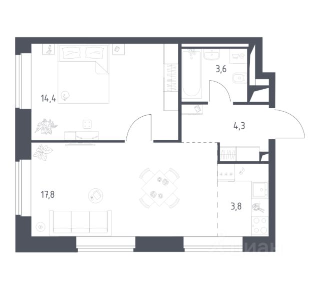 • ✅ Минимальная площадь: 34,3 м²
