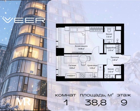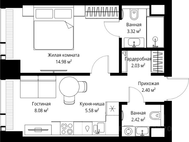 Продаётся светлая однокомнатная квартира евроформата площадью 44,6 м² в башне "Созидание" клубного дома "Кутузов Сити". Планировка квартиры продумана до мелочей и позволяет создать комфортное пространство для жизни. Просторная кухня-столовая с панорамными окнами объединяет обеденную зону, кухню и гостиную. Изолированная спальня обеспечивает уединённое пространство для отдыха. Для хранения вещей есть отдельная гардеробная, а также ниша в прихожей. Просторная ванная комната позволяет разместить как душевую кабину, так и большую ванную. Панорамные окна квартиру естественным светом и делают интерьер стильным. Высокие потолки придают пространству ощущение свободы и лёгкости. родуманная планировка позволяет эффективно использовать каждый квадратный метр. О проекте: "Кутузов Сити" — клубный дом на 220 квартир, разработанный совместно с бюро Atrium и Oleg Klodt Architecture & Design. Проект строится в престижном Западном административном округе Москвы, всего в нескольких минутах ходьбы от Кутузовского проспекта. Закрытая территория, приватный двор, подземный паркинг и стильные лобби создают атмосферу комфорта и безопасности. В двух шагах от дома находится крупнейшая природная территория Москвы — природный заказник "Долина реки Сетунь". Камерная застройка и развитая инфраструктура делают "Кутузов Сити" отличным выбором для тех, кто ценит качество жизни и близость к природе. (Лот: 128)