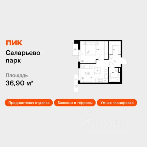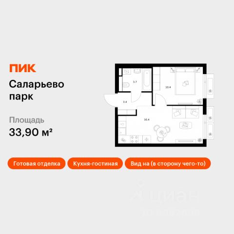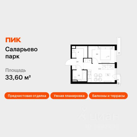 Продаётся 1-комн. квартира площадью 32,3 кв.м на 9 этаже 14 этажного дома (Корпус 57.5, Секция 5) проекта ПИК Саларьево парк. Светлый просторный подъезд на уровне земли, функциональная планировка, большие окна, предчистовая отделка. Жилой район "Саларьево парк" расположен в Новой Москве, в четырёх километрах от МКАД по Киевскому шоссе. Две станции метро: "Саларьево" и "Филатов луг", — находятся в пешей доступности от проекта. Дойти до них можно за 510 минут. В квартале уже создана качественная среда, где есть абсолютно всё для полноценной жизни, работы и отдыха. Благодаря удобному расположению проекта всё важное будет рядом: детские сады, школы, кафе и рестораны, шопинг в торговых центрах, фитнес и даже аэропорт. Все корпуса в квартале гармонично сочетаются, образуя единую городскую среду. Между собой их объединяет невысокая этажность и натуральная цветовая гамма. Здесь приятно гулять и проводить время на улице всей семьёй. В "Саларьево парке" создана уникальная образовательная среда, включающая в себя шесть школ, рассчитанных на 6 250 учеников. Две из них уже открыты, их посещает 2 300 детей. Также на территории "Саларьево парка" находится 12 детских садов, один из которых с бассейном. Сейчас уже открыты 7 садов. В "Саларьево парке" открыта уникальная игровая площадка — PlayHub "Оригами". Здесь есть ручей, горка-труба и рельефные холмы. Взрослые смогут отдохнуть в уютном кафе, пока дети играют. Также на территории проекта есть SportHub — большая спортивная зона, разделённая по интересам и возрастам. Здесь можно заниматься разными видами спорта: футболом, баскетболом, волейболом и стритболом. Зимой центральную часть площадки превращают в каток. Во дворах-парках жилого квартала есть места для отдыха, детские и спортивные площадки. На первых этажах домов расположены магазины, кафе и полезные сервисы. Также вблизи проекта есть несколько масштабных торговых центров. До ТЦ "Саларис" пять минут пешком, до "Рио", Metro Cash & Carry и "Леруа Мерлен" — пять минут на автомобиле. Артикул 1018772 (Застройщик ООО "Специализированный Застройщик "Тирон")