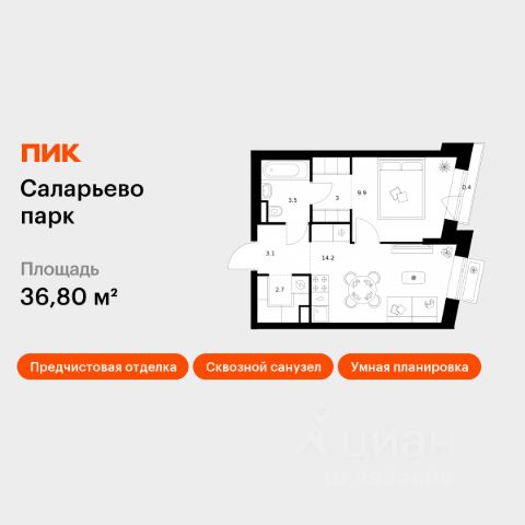 Продаётся 1-комн. квартира площадью 36,6 кв.м на 9 этаже 18 этажного дома (Корпус 74.6, Секция 6) проекта ПИК Саларьево парк. Светлый просторный подъезд на уровне земли, функциональная планировка, большие окна, c отделкой. Жилой район "Саларьево парк" расположен в Новой Москве, в четырёх километрах от МКАД по Киевскому шоссе. Две станции метро: "Саларьево" и "Филатов луг", — находятся в пешей доступности от проекта. Дойти до них можно за 510 минут. В квартале уже создана качественная среда, где есть абсолютно всё для полноценной жизни, работы и отдыха. Благодаря удобному расположению проекта всё важное будет рядом: детские сады, школы, кафе и рестораны, шопинг в торговых центрах, фитнес и даже аэропорт. Все корпуса в квартале гармонично сочетаются, образуя единую городскую среду. Между собой их объединяет невысокая этажность и натуральная цветовая гамма. Здесь приятно гулять и проводить время на улице всей семьёй. В "Саларьево парке" создана уникальная образовательная среда, включающая в себя шесть школ, рассчитанных на 6 250 учеников. Две из них уже открыты, их посещает 2 300 детей. Также на территории "Саларьево парка" находится 12 детских садов, один из которых с бассейном. Сейчас уже открыты 7 садов. В "Саларьево парке" открыта уникальная игровая площадка — PlayHub "Оригами". Здесь есть ручей, горка-труба и рельефные холмы. Взрослые смогут отдохнуть в уютном кафе, пока дети играют. Также на территории проекта есть SportHub — большая спортивная зона, разделённая по интересам и возрастам. Здесь можно заниматься разными видами спорта: футболом, баскетболом, волейболом и стритболом. Зимой центральную часть площадки превращают в каток. Во дворах-парках жилого квартала есть места для отдыха, детские и спортивные площадки. На первых этажах домов расположены магазины, кафе и полезные сервисы. Также вблизи проекта есть несколько масштабных торговых центров. До ТЦ "Саларис" пять минут пешком, до "Рио", Metro Cash & Carry и "Леруа Мерлен" — пять минут на автомобиле. Артикул 1006867 (Застройщик ООО "Специализированный Застройщик "Тирон")
