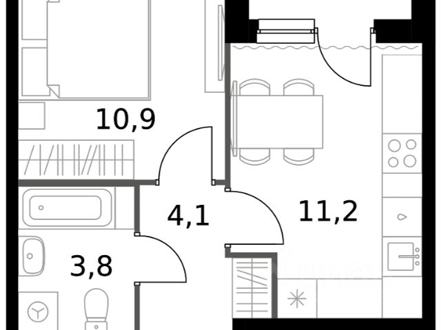 Продаётся 1-комнатная квартира 120, площадью 35,10 м², на 9 этаже в ЖК "Новая Алексеевская роща" корпус 4. Стоимость — от 6378974 руб. Квартира без отделки, планировка односторонняя, окна во двор.