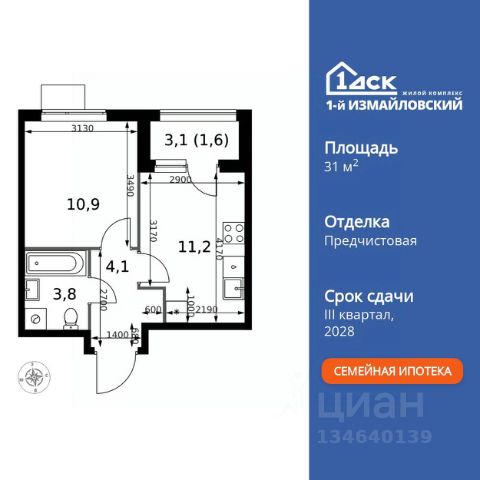 Прямая продажа от застройщика! Жилой Комплекс Комфорт класса. Продаётся 1-к квартира номер 50 общей площадью 31.6 кв.м. на 9-м этаже 24 этажного здания. Предчистовая отделка. Цена с учётом скидки. Особенности квартиры: - Организуем показ в удобное для вас время! - Линейная планировка - максимальная функциональность и удобство. - Гибкая планировка - создайте пространство по своему вкусу. - Ниша под шкаф - компактное и удобное место для вещей. - Лоджия - уютное место для отдыха и тишины. Квартира с предчистовой отделкой. Вам не придется заниматься черновыми и трудоёмкими работы, а чистовую отделку и дизайн - сделайте на свой вкус. Информация о комплексе: ЖК "1-й Измайловский" в восточной части Москвы: идеальное место для жизни в окружении 14 000 гектаров леса. Наслаждайтесь лыжными прогулками зимой и пробежками летом в сиреневом саду и лесопарках. Комплекс отгорожен от шоссе застройкой первой линии и садами здоровья. Из окон открываются виды на парк "Лосиный остров" и зеленые дворы. Близость к природе и спортивным объектам создаёт атмосферу здорового образа жизни. Транспортная доступность: Не более 2,5 км до станций метро "Щёлковская" и "Черкизовская" и МЦК "Локомотив". Щёлковское шоссе соединяет квартал с Северо-восточной хордой и МКАД, Центральным автовокзалом и Восточным железнодорожным вокзалом. Две автобусные остановки в паре минут ходьбы и 11 маршрутов общественного транспорта. На автомобиле 3 минуты до СВХ 12 минут до ТТК 15 минут до Садового кольца Внутренняя инфраструктура: ЖК расположен в историческом районе Москвы с развитой инфраструктурой. В шаговой доступности: 6 детских садов (включая собственный на 125 мест), 3 школы, поликлиники, торговые центры и парки. Проект создан для здорового образа жизни: рядом стадионы, спортивные объекты для футбола, баскетбола и конного спорта, а также более 30 км беговых и велодорожек. Всё для активной жизни в окружении зелени и современной инфраструктуры. Квартира с предчистовой отделкой - ваш дизайн без черновых работ