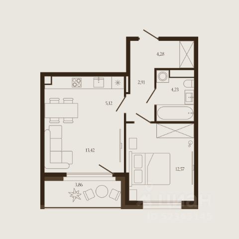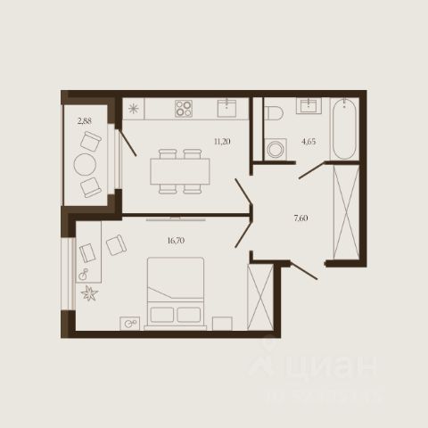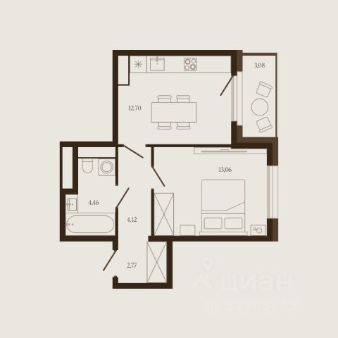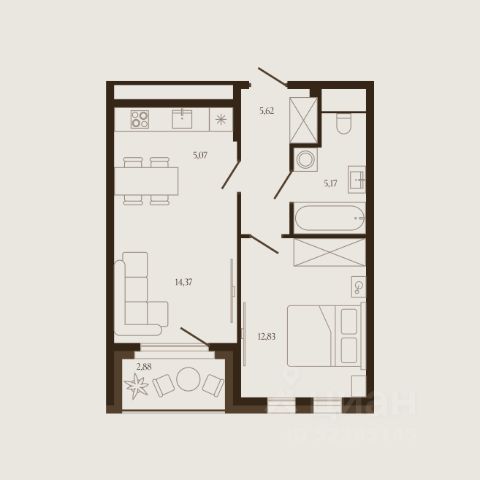 В квартире большая кухня-10,5м.кв, жилая комната-15, 3м.кв, прихожая-9,5м.кв., с/у совмещенный, гардеробная(кладовая). Главная достопримечательность в квартире это наличие и балкона и лоджии. Выход на застекленную лоджию на кухне, а в комнате выход на панорамный балкон. Общая площадь с учетом балкона и лоджии - 44,8м.кв. Высота потолков 2,8м.