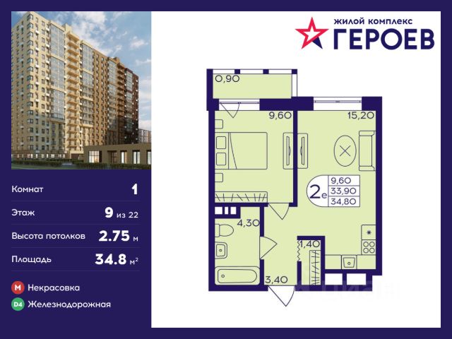 Продаётся 1-комнатная квартира 34.40 кв. м. в жилом комплексе "Героев" в Балашихе, Железнодорожный. Квартира расположена на 9 этаже 410 корпуса. В наличии квартиры с отделкой. Всего 40 минут до центра Москвы. При покупке квартиры в сданном доме ключи выдаются сразу! Жилой квартал "Героев" - это уютный проект для семей с детьми. В квартале созданы все условия для досуга всех возрастов: игровые и спортивные площадки, места для отдыха и прогулочные зоны. За 15 минут можно дойти от дома до Ольгинского лесопарка, популярного места для отдыха на свежем воздухе. На территории жилого комплекса уже открыт детский сад на 250 мест и началось строительство еще одного - для 220 малышей, а также школы для 1320 учеников. Рядом работают магазины, кафе, супермаркеты, пункты выдачи. Преимущества: • В уютных светлых квартирах с просторными кухнями-гостиными удобно встречать гостей и проводить время наедине друг с другом. • Благодаря увеличенному остеклению в комнатах много света. • Квартиры продаются с отделкой, можно заселяться сразу после получения ключей.