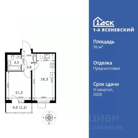 Прямая продажа от застройщика! Жилой Комплекс класса Комфорт Плюс. Продаётся 1-к квартира номер 685 общей площадью 36.6 кв.м. на 9-м этаже 18 этажного здания. Предчистовая отделка. Цена с учётом скидки. Особенности квартиры: - Квартиры рядом с метро - м. Корниловская 9 мин пешком - 63 га лесопарка за окнами - Школа c ИТ-кластером и бассейном. 2 детских сада - Организуем показ в удобное для вас время! - Мастер-зона с гардеробной. Просторное место для отдыха и удобного хранения вещей. - Линейная планировка - максимальная функциональность и удобство. - Можно оборудовать рабочее место - комфорт для работы и учёбы. - Гардеробная - удобство для хранения и организации вещей. - Ниша под шкаф - компактное и удобное место для вещей. - Лоджия - уютное место для отдыха и тишины. Квартира с предчистовой отделкой. Вам не придется заниматься черновыми и трудоёмкими работы, а чистовую отделку и дизайн - сделайте на свой вкус. Информация о комплексе: ЖК "1-й Ясеневский": преимущества городской инфраструктуры и природы. Пешая доступность к метро, школе с бассейном и ИТ-кластеру, а также 63 га Троицкого лесопарка под окнами. Закрытая территория с бульварами, велодорожками, кафе и дворами без машин. Фруктовые деревья и городские сады создают уникальную атмосферу. Всего в 1 км от МКАД - идеальный баланс для современной жизни. Транспортная доступность: До метро "Корниловская" - 12 минут пешком До метро "Тютчевская" - 25 минут пешком До метро "Теплый стан" - 10 минут на транспорте До метро "Ольховая" - 30 минут на общественном транспорте Личный автотранспорт: Выезд на Калужское шоссе - 500 м МКАД - 1 км Внутренняя инфраструктура: ЖК "1-й Ясеневский" - идеальное место для семей с детьми. Рядом Троицкий лесопарк для прогулок, а во дворах - современные детские площадки, разработанные с участием психологов. В шаговой доступности два детских сада и школа на 1100 мест с ИТ-кластером, бассейном и классами робототехники. Всё для счастливого детства и успешного будущего. Квартира с предчистовой отделкой - ваш дизайн без черновых работ