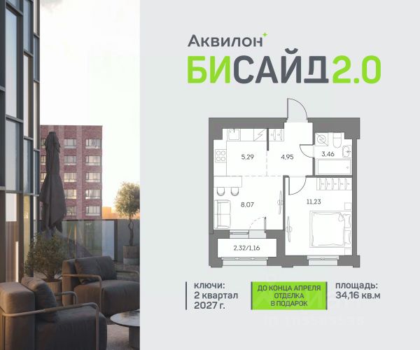 Продажа от застройщика. Продается уютная однокомнатная квартира на 9 этаже современного жилого комплекса Бисайд 2.0. Вид из окон: во двор. Срок сдачи: 2 кв. 2027 г. Квартира с лоджией. Отделка WhiteBox: - Вам не придется заниматься черновыми работами. - Возможность реализовать любой дизайн-проект. Расположение: В Бисайд 2.0 все необходимое - в шаговой доступности, не нужно тратить много времени на дорогу до работы, школы и поликлиники, походы в магазины и кинотеатры. Квартал расположен на пересечении ключевых транспортных магистралей Москвы, что позволяет быстро и легко добраться до любой нужной локации. Выбирайте наиболее подходящее занятие или попробуйте все! - Спортивные центры - Ретейл на первых этажах - Событийная площадь с амфитеатром - Дворовые площадки для активностей Транспортная доступность: - 5 минут на машине до ТТК - 7 минут на машине до Садового кольца - 7 минут пешком до станции "Нижегородская Внутренняя инфраструктура Бисайд 2.0: - Своя школа на 825 учеников - Просторное и светлое гранд-лобби - Коворкинг на открытом воздухе - Детский клуб Akvilon Kids - Подземный паркинг - Колясочные и велосипедные - Сити-боксы для хранения - Профессиональная управляющая компания Преимущества: - Технология энергоэффективности Termo-S, снижающая теплопотерю домов и позволяющую экономить на электроснабжении - Soundstop - технология дополнительной шумоизоляции на 39 дБ в квартирах с WhiteBox и чистовой отделкой - Система умного дома inHome 3.0 позволит контролировать коммунальные расходы, оплачивать счета и пользоваться услугами, не выходя из умного дома - Vent-In - система циркуляции воздуха в каждой комнате