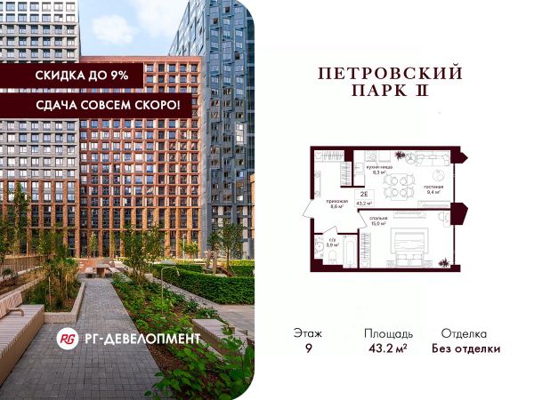 Дом сдан. Ключи в день покупки! В продаже 1-к квартира площадью 39.50 м² с предчистовой отделкой на 9 этаже 49 этажного дома в корпусе Кристал. ЖК Симфония 34 - концептуально новый жилой комплекс премиум-класса с подземной парковкой, состоит из четырех башен высотой 36 - 54 этажа. Квартиры сдаются с базовой (предчистовой) отделкой MR BASE или дизайнерской чистовой отделкой MR READY. Высота потолков 3 - 6 метров, окна высотой до 2,6 м. Более 100 кладовых в подземной части ЖК и более 500 на этажах. Безопасность - Система контроля входа на территорию комплекса, биометрия - Система автоматического водяного пожаротушения и противопожарного водопровода, система пожарной вентиляции - Доступ на парковку при помощи системы распознавания автомобильных номеров, карточка для контроля доступа резидентов - Система видеонаблюдения - Круглосуточная связь через приложение, телефон, голосовые сообщения с охраной, консьержем, call-центр. Расположение Пешком - 6 минут до метро "Дмитровская" - 15 минут до Тимирязевского парка На машине - 5 минут до Савеловского вокзала и Аэроэкспресса в Шереметьево - 10 минут до Москва-Сити и Садового кольца Благоустройство - 70% территории отведены под зеленые насаждения и ландшафтный дизайн - Приватный Японский сад - Детские площадки с зонированием по возрасту - Clubhouse для резидентов - Wellness & SPA - Зона для пикника, зона с гамаками - Центральное лобби, ресторан, коммерческие помещения - Дополнительный вход/выход на территорию комплекса Окружение - В 10 минутах от Symphony 34 находится дизайн-завод Flacon, где регулярно проходят культурно-образовательные и развлекательные мероприятия - Тимирязевский парк расположен в 850 м. Площадь парка 232 га - Рядом расположен парк "Дубки", площадью 16,5 га. - В 15 минутах расположен Хлебозавод 9. Здесь находятся шоурумы брендов, кафе разных кухонь мира, образовательные проекты и площадки для мероприяти