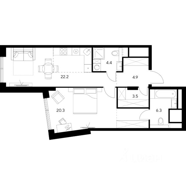 О квартире Продаётся 1-комнатная квартира общей площадью 47.54 кв.м. с отделкой white box. Квартира расположена на 2 этаже корпуса 5 в жилом комплексе бизнес-класса "Среда на Кутузовском" в пешей доступности от метро "Кунцевская". О жилом комплексе Комплекс предназначен для людей, которые ставят в приоритет свой комфорт, умеют прислушиваться к себе и понимают, что нужно для внутренней гармонии. Это проект для тех, кто ценит свое время и использует его правильно. Для тех, кто умеет радоваться тому, что есть. "Среда на Кутузовском" — личное место силы и гармонии в двух шагах от центра города. Инфраструктура Жилой комплекс строится в престижном и зеленом Кунцево. Здесь расположены различные торговые центры, престижные учебные заведения (МГУ, РЭУ им. Плеханова, Финансовый университет при Правительстве РФ, РУДН) медицинские клиники. Представлены широкие возможности для поклонников разных видов спорта: от бега в ближайших парках и велозаездов до гребли, баскетбола, футбола, хоккея, фигурного катания и катания на лыжах. На каждый день подойдет World Class с открытым бассейном — он находится всего в 1 минуте от дома. Выбор мест для прогулок также разнообразен: Суворовский парк, лесной массив Крылатских холмов, Москворецкий парк и природный заказник "Долина реки Сетунь". 10 мин пешком: -м. Кунцевская -вся необходимая инфраструктура До 15 мин на авто: -Северо-Западная хорда -Кутузовский проспект -Рублевское шоссе -МКАД -Можайское шоссе Особенности Проект сочетает в себе ритмичность и динамичность, благодаря своей архитектуре, при он этом окружен зеленью и парками. "Среда на Кутузовском" погружает в активный и разнообразный образ жизни, дает вариативные возможности досуга и вдохновляет на новые свершения. —Зоны отдыха у воды —Принцип многослойности в архитектуре —Зона барбекю —Пентхаусы —Умный паркинг —Гайдбук по управлению умным домом —Окна в пол на всех этажах Цены на евродвушку в новостройке в районе Кунцево в Москве.
