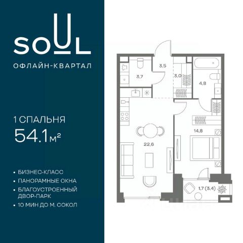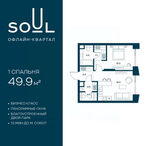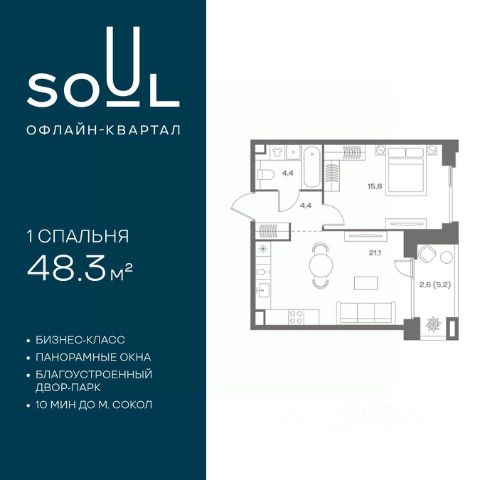 Цены указаны с условием 100% оплаты и стандартной ипотеки. Прямая продажа от застройщика! Продается 1-к. квартира номер 91 общей площадью 44.8 кв.м. на 3-м этаже 8 этажного дома, корпус UNIQUE (премиум-класс). Без отделки. Проект бизнес-класса SOUL от девелопера FORMA. До метро Сокол 10 мин пешком. Архитектура от британского бюро SimpsonHaugh. Благоустройство дворов — Gillespies и GAFA. Территория состоит из культурного парка и приватных дворов. Озеленение в эстетике лесного оазиса. Насыщенное благоустройство: прогулочные тропинки, релакс-зоны, пряный и сенсорный сады, развивающие детские площадки и воркауты. В центре проекта объект культурного наследия — общественное пространство Изофабрика, построенная в 30-х годах по проекту архитектора Георгия Гольца. Здесь будут располагаться мастерские для взрослых и детей, выставочные залы, коворкинги, образовательный центр, рестораны и кафе. Квартиры с панорамными окнами, мастер-спальнями, гардеробными, классическими балконами и лоджиями, видовыми террасами. Высота потолков от 2,9 до 3,5 м. В проекте 2 детских сада на 100 и 200 малышей. Клубная гостиная, фитнес-рум, детская игровая комната, дизайнерские лобби, подземный паркинг и келлеры.