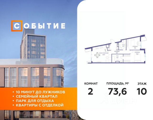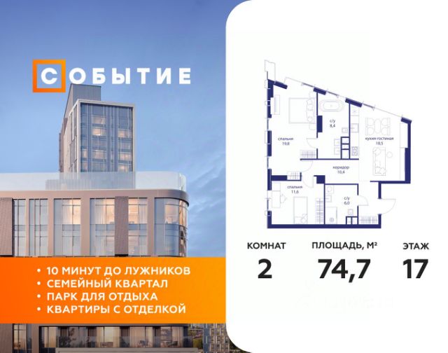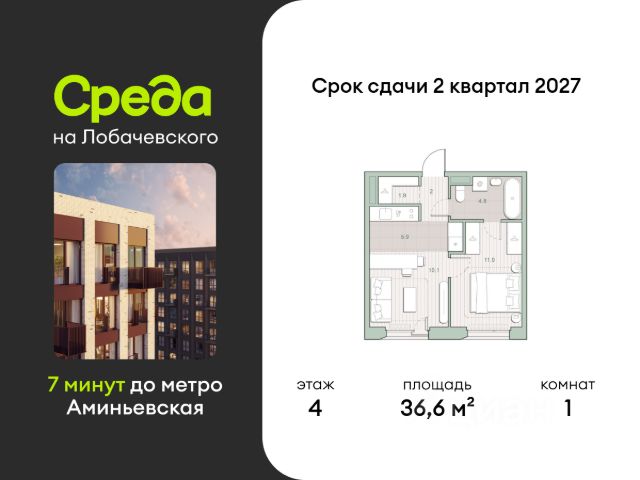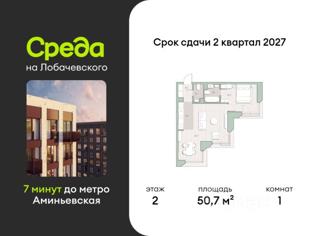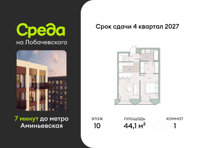 О квартире Продаётся однокомнатная квартира общей площадью 38.40 кв. м. с отделкой на выбор: черновая, White Box. Квартира на 15 этаже корпуса 5.5 в жилом комплексе бизнес-класса "Среда на Лобачевского". До метро "Аминьевская" 7 минут пешком. Развитый район с удобным выездом "Среда на Лобачевского" строится рядом с Аминьевским и Очаковским шоссе, отсюда можно доехать до МКАД или Ленинского проспекта за 10 минут. В районе уже есть всё для жизни: рестораны, кофейни, торговые центры, поликлиники и спортивные комплексы, школы и сады, бульвары и парки. - 7 минут ходьбы до станции метро "Аминьевская". - 15 минут пешком до станции МЦД-4 "Очаково". - 8-15 минут на машине до Кутузовского проспекта и ТТК. - До 15 минут езды до заказников "Долина реки Сетунь" и "Воробьёвы горы". Акции и спецпредложения - Выгода 12%: если внести 100% оплату или оформить семейную ипотеку под 6%. Действует до 13 апреля. - Низкие ставки по ипотеке: 0,1% в первый год или 0,11% в первые два года кредита. - Трейд-ин от "Среды": можно обменять свою текущую квартиру на новую. - Ипотека для семей с детьми: если ребёнку до 7 лет, предлагаем льготную ставку 3,5% О жилом комплексе "Среда на Лобачевского" - новый квартал в парадном стиле старой Москвы. Благодаря разноэтажной застройке во дворе комплекса будет много света и воздуха, без ощущения замкнутого пространства. Во дворе лаунж-зоны для медитации и работы, площадки для игр и кинопоказов, а на первых этажах - кофейни и магазины. Особенности - Высота потолков 3,24 метра. - Панорамное остекление в пол. - Квартиры с террасами, мастер-спальнями и сквозными планировками. - Дизайнерские гранд-лобби в каждом корпусе. - Ландшафтный парк с зонами отдыха у воды. - Коворкинг на свежем воздухе. - Локации для спорта, игр и приватного отдыха. - Соседский бульвар с площадкой для подростков. - Подземный паркинг с двумя въездами. - Система бесключевого доступа. - Стрит-ритейл на первых этажах.