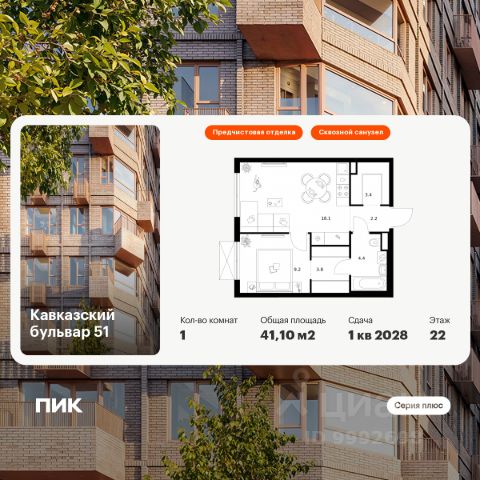 Продаётся 1-комн. квартира площадью 41,1 кв.м на 8 этаже 24 этажного дома (Корпус 3.5, Секция 2) проекта ПИК Кавказский бульвар 51. Светлый просторный подъезд на уровне земли, функциональная планировка, большие окна, предчистовая отделка. "Кавказский бульвар 51" — современный жилой квартал в районе Царицыно. Проект частично реализован. "Кавказский бульвар 51" находится в районе Царицыно, недалеко от одноимённого музея-заповедника. До метро "Кантемировская" — 17 минут пешком. За 20 можно дойти до станции "Чертаново". В 10 минутах на машине — МКАД, в 11 минутах — Варшавское шоссе, а в 16 минутах — ТТК. В проекте жилые дома высотой от 5 до 33 этажей, детский сад и школа. На первых этажах доступны магазины, кафе, салоны красоты и другие сервисы — чтобы купить кофе и свежий хлеб к завтраку, можно просто спуститься на лифте. В уютных дворах-парках есть места для отдыха и детские площадки. Для прогулок на свежем воздухе мы построим для жителей широкий пешеходный бульвар. В районе вокруг "Кавказского бульвара 51" есть всё для комфортной жизни: детские сады, школы, поликлиники, магазины и торговые центры. Девять минут на машине — и вы у музея-заповедника "Царицыно", где можно гулять среди исторических построек, лежать на траве под тенью деревьев или заниматься спортом на специальных площадках. Есть парки и поближе: до Аршиновского можно дойти за 8 минут, а до парка "Сосенки" — за 13 минут. Артикул 998565 (Застройщик АО "СПЕЦИАЛИЗИРОВАННЫЙ ЗАСТРОЙЩИК "ТОРГОВЫЙ ДОМ СПУТНИК") Цены на евродвушку в новостройке рядом с метро Царицыно.