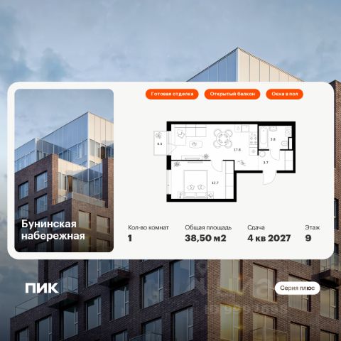 Продаётся 1-комн. квартира площадью 37,9 кв.м на 2 этаже 16 этажного дома (Корпус 2.6/1.2, Секция 2) проекта ПИК Бунинская набережная. Светлый просторный подъезд на уровне земли, функциональная планировка, большие окна, предчистовая отделка. Удобное расположение: 18 минут пешком от м. "Потапово" и 12 минут на автомобиле до станции "Бунинская аллея". 12 минут на автомобиле до трассы Солнцево — Бутово — Варшавское шоссе. 20 минут на автомобиле до МКАД и Калужского шоссе. 1520 минут езды до живописных парков: "Бутовский лесопарк", заказник "Южное Бутово". Особенности проекта Камерный квартал в Новой Москве, на берегу Ивановского пруда. Одна из ключевых особенностей проекта — квартиры с панорамным видом на воду. Архитекторы вдохновились локацией проекта: природные оттенки и активная пластика корпусов напоминают рельефные выступы на берегу, а окна отражают водную гладь, визуально объединяя дома с природой. Преимущества проекта Светлые и просторные лобби с зонами ожидания. Подземный паркинг. Набережная и пешеходная аллея для прогулок. Парк на склоне с игровой зоной. Готовая инфраструктура района: 3 школы, 6 детских садов, взрослая и детская поликлиники. Артикул 968474 Купить квартиру евродвушку в новостройке рядом с метро Коммунарка.