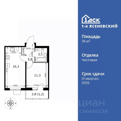 Пешая доступность от метро и московская прописка! Продается уютная 1-комн. квартира площадью 38,6 кв.м на 11 этаже 17 этажного жилого комплекса бизнес-класса Foreville от 3S Group. Общая площадь: 38,6 кв.м., жилая: 9,9 кв.м., площадь кухни-гостиной: 19,9 кв.м., высота потолков: 2,72 м., окна выходят во двор. Квартира предлагается без отделки, что идеально подходит для воплощения собственного дизайнерского решения. Также доступна опция предчистовой отделки, стоимость которой включается в общую цену квартиры. О проекте: Пространство Комплекс располагает крупнейшим приватным двор-парком в Новой Москве площадью 1,2 Га, предлагая жителям огромное пространство для отдыха, спорта и игр на свежем воздухе. Природный ландшафт Внутренний лесопарк с более чем 183 взрослыми деревьями и 10 320 цветущими кустарниками создает уникальную природную атмосферу для каждого времени года. Игровые и спортивные зоны Обширные площадки с безопасным покрытием, специализированные зоны для детей разных возрастных групп и взрослых, включая воркаут и настольный теннис, способствуют активному и здоровому образу жизни. Экологичность и долговечность Использование натуральных материалов, таких как лиственница, и крупноформатной бетонной плитки для покрытия, подчеркивает стремление проекта к экологичности и устойчивости. Безопасность и уединение Внутренний двор без машин обеспечивает безопасность для детей и спокойствие для взрослых. Территория огорожена и находится под круглосуточным видеонаблюдением. Сохранение времени Благодаря превосходной транспортной доступности и близости к новой станции метро Корниловская, Foreville позволяет жителям экономить время для семьи и отдыха на природе, минимизируя необходимость длительных поездок. Foreville не просто жилье, а целая экосистема для комфортной и гармоничной жизни на свежем воздухе, совмещая преимущества городской инфраструктуры и непосредственную близость к природе.
