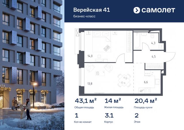 Продаётся уютная однокомнатная квартира площадью 42,2 м² в башне "Гармония" клубного дома "Кутузов Сити". Панорамные окна открывают вид на парк, наполняя квартиру естественным светом и создавая ощущение простора, а высокие потолки делают квартиру ещё более светлой и воздушной. Просторная кухня-столовая станет центром домашней жизни — здесь удобно готовить, собираться всей семьёй или встречать гостей. Изолированная спальня располагает к спокойному отдыху. Правильная форма комнат позволяет без труда разместить всю необходимую мебель и создать гармоничное пространство для жизни. В квартире предусмотрена отдельная зона для гардеробной — это удобно для хранения одежды и поддержания порядка. Ванная комната достаточно просторна для размещения как ванны, так и душа, а также стиральной машины. О проекте: "Кутузов Сити" — клубный дом премиум-класса, созданный совместно с бюро Atrium и Oleg Klodt Architecture & Design. Проект строится в престижном Западном административном округе Москвы, всего в нескольких минутах от Кутузовского проспекта. Закрытая территория, приватный двор, подземный паркинг и дизайнерские лобби создают атмосферу уюта и безопасности. Из окон открываются виды на крупнейшую природную территорию Москвы, а камерная застройка и развитая инфраструктура делают "Кутузов Сити" отличным выбором для тех, кто ценит качество жизни и близость к природе. (Лот: 8)