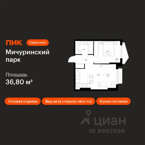 Продаётся 1-комн. квартира площадью 36,9 кв.м на 4 этаже 32 этажного дома (Корпус 4.1, Секция 1) проекта ПИК Мичуринский парк. Светлый просторный подъезд на уровне земли, функциональная планировка, большие окна, c отделкой. "Мичуринский парк" расположен на западе Москвы, в районе Очаково-Матвеевское, в 7 минутах пешком от метро "Озёрная". Архитектурную концепцию корпусов 4.4 и 4.5 разработала российская студия KK ARCHSTUDIO. У каждого корпуса свой характер — его формируют уникальная форма зданий и пластика фасада. Динамичные складки эркеров образуют характерный геометрический рисунок, который поддерживают и дополняют архитектурные детали. В корпусах 4.4 и 4.5 открытые балконы разнообразных форм: прямоугольные, фигурные. Все балконы выходят в тихий внутренний двор-парк. В эркерной части обоих корпусов предусмотрены лоджии. У подъездов будет два выхода: на улицу и во двор-парк. В наших дворах мы установим столы и лавочки со встроенными зарядными устройствами. Не нужно будет возвращаться домой, чтобы зарядить смартфон или ноутбук: можно весь день работать на свежем воздухе. В лобби "Мичуринского парка" будет удобная зона ожидания, где можно встретить друзей, курьера или дождаться такси, а также гостевая туалетная комната со столиком для пеленания. На территории проекта предусмотрен подземный паркинг и кладовые с надежной системой вентиляции, пожаротушения и системой круглосуточного видеонаблюдения. Собственная инфраструктура проекта включает два детских сада и две школы. Также по соседству с жилым комплексом будет построен многофункциональный торгово-офисный комплекс Lakes. Вдоль всего "Мичуринского парка" будут проходить несколько пешеходных бульваров с местами для отдыха. Рядом с проектом несколько зелёных зон, которые прекрасно подойдут для отдыха и спорта на свежем воздухе. Жители "Мичуринского парка" смогут выбирать, куда отправиться на прогулку: в пешей доступности Очаковский парк, парк Школьников и парк Олимпийской деревни, а на автомобиле можно быстро добраться до Тропарёвского лесопарка и Мещерского парка. Вблизи "Мичуринского парка" расположены ведущие вузы: МИРЭА, МГИМО, РАНХиГС, Институт радиотехники и телекоммуникационных систем и Академия ФСБ. Артикул 1054197 (Застройщик ООО "СПЕЦИАЛИЗИРОВАННЫЙ ЗАСТРОЙЩИК "ОЗЁРНАЯ 44")