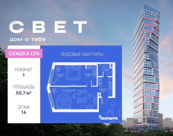 Продаётся 1-к квартира 46.2 кв.м. на 9-м этаже 51 этажного дома. Без отделки. Срок сдачи: 1 кв. 2028 г. Жилой комплекс "СВЕТ" — воплощение современного комфорта и архитектурного изящества, созданное девелопером Dominanta в сотрудничестве с известным бюро СПИЧ. Комплекс представляет собой элегантное 52-этажное здание, расположенное в Западном Дегунино, на Дмитровском шоссе, 83А. Удачное местоположение обеспечивает удобство для жителей: станция метро "Селигерская" находится в пешей доступности, что делает путь в центр Москвы быстрым и комфортным. Транспортная доступность: - 5 минут пешком до станции метро "Селигерская" - 15 минут на машине до ТТК - 16 минут на транспорте до станции МЦД "Моссельмаш" Квартиры бизнес-класса в ЖК "СВЕТ" сочетают функциональность и эстетическое совершенство. Панорамные окна наполняют жилые пространства естественным светом и открывают захватывающие виды на мегаполис. Каждый житель дома получит доступ к бесплатной клубной инфраструктер SocialHUB. Для бизнес-задач и запуска личных проектов хоум-офис c рабочими станциями, переговорными и креативной студией. Для отдыха и формирования новых социальных связей ивент-пространство, которое подойдет для вечеринки, кинопоказа или паблик-тока. Для новых побед зоны для занятия киберспортом. И главное SocialHUB полностью бесплатен для жителей, все расходы на его содержание покрываются застройщиком. Территория проекта "СВЕТ" включает несколько сценарных зон: ландшафтный парк с шаговой тропой, спортивная зона, открытый амфитеатр, двухуровневая детская площадка, уличные рабочие станции и беседки для отдыха. Сложный рельеф с искусственными холмами и живыми изгородям позволяет эффективно разделить пространство на активные зоны и уединённые "кабинеты" для работы, отдыха или медитации. В ЖК "СВЕТ" каждый найдет арену для своей энергии. Для любителей динамичных игр — павильон для падел (модного микса тенниса и сквоша). Рядом — площадка для стритбола и столы для пинг-понга, где можно устроить соседский турнир! И, конечно, абсолютный мастхэв — зона воркаут для функциональных тренировок под открытым небом. У входа в жилой комплекс гостей встречается арт-объект, разработанный Студией Артемия Лебедева. Его мягкий, волнообразный силуэт напоминает разлитый свет. С заходом солнца арт-объект оживает благодаря светоотражающим материалам его форма становится динамичной и задает настроение всему пространству.