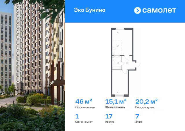 Продаётся 1-комн. квартира площадью 38 кв.м на 14 этаже 16 этажного дома (Корпус 2.6/1.4, Секция 4) проекта ПИК Бунинская набережная. Светлый просторный подъезд на уровне земли, функциональная планировка, большие окна, c отделкой. Удобное расположение: 18 минут пешком от м. "Потапово" и 12 минут на автомобиле до станции "Бунинская аллея". 12 минут на автомобиле до трассы Солнцево — Бутово — Варшавское шоссе. 20 минут на автомобиле до МКАД и Калужского шоссе. 1520 минут езды до живописных парков: "Бутовский лесопарк", заказник "Южное Бутово". Особенности проекта Камерный квартал в Новой Москве, на берегу Ивановского пруда. Одна из ключевых особенностей проекта — квартиры с панорамным видом на воду. Архитекторы вдохновились локацией проекта: природные оттенки и активная пластика корпусов напоминают рельефные выступы на берегу, а окна отражают водную гладь, визуально объединяя дома с природой. Преимущества проекта Светлые и просторные лобби с зонами ожидания. Подземный паркинг. Набережная и пешеходная аллея для прогулок. Парк на склоне с игровой зоной. Готовая инфраструктура района: 3 школы, 6 детских садов, взрослая и детская поликлиники. Артикул 969140