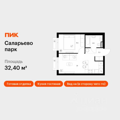 Продаётся 1-комн. квартира площадью 34,1 кв.м на 16 этаже 17 этажного дома (Корпус 20, Секция 1) проекта ПИК Саларьево парк. Светлый просторный подъезд на уровне земли, функциональная планировка, большие окна, c отделкой. Жилой район "Саларьево парк" расположен в Новой Москве, в четырёх километрах от МКАД по Киевскому шоссе. Две станции метро: "Саларьево" и "Филатов луг", — находятся в пешей доступности от проекта. Дойти до них можно за 510 минут. В квартале уже создана качественная среда, где есть абсолютно всё для полноценной жизни, работы и отдыха. Благодаря удобному расположению проекта всё важное будет рядом: детские сады, школы, кафе и рестораны, шопинг в торговых центрах, фитнес и даже аэропорт. Все корпуса в квартале гармонично сочетаются, образуя единую городскую среду. Между собой их объединяет невысокая этажность и натуральная цветовая гамма. Здесь приятно гулять и проводить время на улице всей семьёй. В "Саларьево парке" создана уникальная образовательная среда, включающая в себя шесть школ, рассчитанных на 6 250 учеников. Две из них уже открыты, их посещает 2 300 детей. Также на территории "Саларьево парка" находится 12 детских садов, один из которых с бассейном. Сейчас уже открыты 7 садов. В "Саларьево парке" открыта уникальная игровая площадка — PlayHub "Оригами". Здесь есть ручей, горка-труба и рельефные холмы. Взрослые смогут отдохнуть в уютном кафе, пока дети играют. Также на территории проекта есть SportHub — большая спортивная зона, разделённая по интересам и возрастам. Здесь можно заниматься разными видами спорта: футболом, баскетболом, волейболом и стритболом. Зимой центральную часть площадки превращают в каток. Во дворах-парках жилого квартала есть места для отдыха, детские и спортивные площадки. На первых этажах домов расположены магазины, кафе и полезные сервисы. Также вблизи проекта есть несколько масштабных торговых центров. До ТЦ "Саларис" пять минут пешком, до "Рио", Metro Cash & Carry и "Леруа Мерлен" — пять минут на автомобиле. Артикул 946811 (Застройщик ООО "Специализированный Застройщик "Тирон")