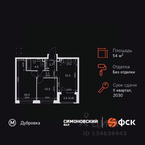 Прямая продажа от застройщика! Жилой Комплекс класса бизнес+. Продаётся 3-к квартира номер 5 общей площадью 54.8 кв.м. на 2-м этаже 27 этажного здания. Без отделки. Цена с учётом скидки. Особенности квартиры: - Организуем показ в удобное для вас время! - Мастер-зона с гардеробной. Просторное место для отдыха и удобного хранения вещей. - Линейная планировка - максимальная функциональность и удобство. - Евроформат - просторное и удобное жилье с отличной планировкой. - Гибкая планировка - создайте пространство по своему вкусу. - Место для игры/занятия спортом - идеальное пространство для активных детей. - Можно оборудовать 2 или более рабочих места - пространство для нескольких человек. - Линейная кухня - функциональность и практичность в одном решении. - Гардеробная - удобство для хранения и организации вещей. - Ниша под шкаф - компактное и удобное место для вещей. - Лоджия - уютное место для отдыха и тишины. Квартира без отделки. Чистый холст для воплощения интерьера вашей мечты. Информация о комплексе: Проект класса бизнес+ в историческом районе Москвы с насыщенной городской инфраструктурой. Приватное расположение внутри квартала, закрытый ландшафтный двор с водопадом, инженерия по золотому стандарту ФСК, сбалансированное благоустройство и подземный паркинг делают жилой комплекс "Симоновский Вал" идеальным местом для семьи. Террасы "Симоновского Вала" - уникальный архитектурный элемент, который не только формирует выразительный облик комплекса, но и становится естественным продолжением вашего жилого пространства. Приватная смотровая площадка с панорамными видами на центр Москвы и изгибы Москвы-реки открывает безграничные возможности для премиального образа жизни. Лобби проекта наполнено светом и спокойствием - здесь хочется ненадолго задержаться, перевести дыхание. Мягкое освещение создают авторские светильники: они подчеркивают архитектуру пространства и не утомляют глаз. Акцентный элемент - мозаичное панно с растительным мотивом, выполненное из керамических пластин, которое придает интерьеру изысканность и художественную выразительность. Транспортная доступность: Метро "Дубровка" - 7 мин. пешком Метро "Волгоградский проспект" - 17 мин. пешком Станция МЦК "Дубровка" - 9 мин. пешком Внутренняя инфраструктура: Район, избалованный хорошей инфраструктурой, предъявляет высокие требования к сервисам и магазинам под вашими окнами. И "Симоновскому Валу" есть что ответить. В его общественном дворе расположеныв магазины со свежайшими продуктами и бытовыми товарами, кофейни с безупречным капучино и здоровыми десертами, барбершоп, салон красоты и другие сервисы. Квартира без отделки - чистый холст для вашего интерьера.
