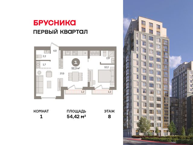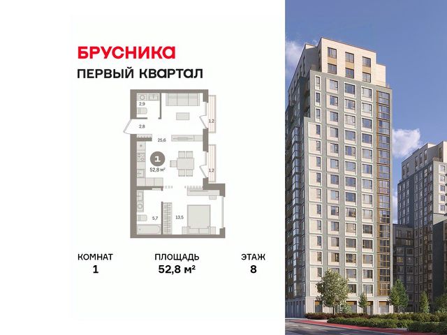 Продаётся с кладовой. Квартира с кухней-гостиной и одной спальней в "Первом квартале". Особенности планировки: балкон, второй санузел, мастер-спальня, свободная планировка. квартиры в нашей базе: МТК05-Ж2.8.4.